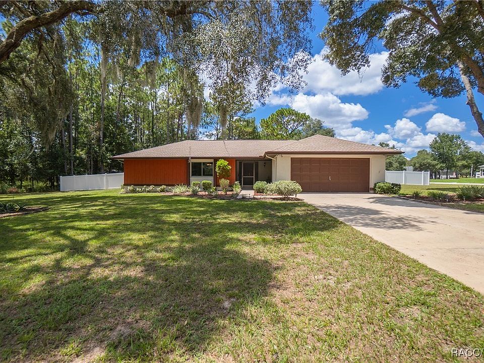 Nestled on a spacious 1.15-acre corner parcel in the desirable Pine Ridge community, this beautiful 3/2/2 home offers 1,621 square feet of living space for ONLY $320,000. The desirable split floor plan includes a remodeled kitchen featuring granite countertops, wood cabinetry, a breakfast bar, pantry, and appliances—perfect for both everyday living and entertaining. Additional features include a dining area, living & family rooms, primary suite including two closets and an en-suite bathroom, and two additional bedrooms each featuring walk-in closets. The exterior presents a generous 28x11 screened rear porch, patio area for outdoor relaxation, a 12x24 shed equipped with electricity, a mini-split system, and a steam sauna, plus a second shed for additional storage and partial fencing for added privacy. Recent updates include a new roof (2023), HVAC system (2021), windows (2024), Solar in (2020) and water heater, ensuring peace of mind. You will not be disappointing in this charming home ready for an amazing family to call home.