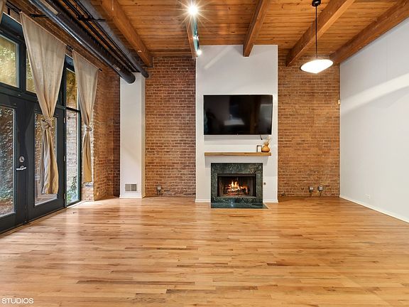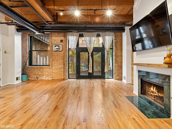 Welcome home to this cozy 2 bedroom spacious loft in the iconic Bodine Building, situated in the heart of Ukrainian Village/West Town. This classic timber loft has exposed brick, 12ft high ceilings, a wood burning fireplace, and direct access to the building's beautifully landscaped courtyard. In the past year, both bathrooms and the kitchen have received cosmetic updates. The bedrooms are spacious and fully enclosed with exterior windows, and new flooring. The large primary bedroom has incredible natural light, a large custom closet, and ensuite. This unit comes with a deeded parking spot in a heated garage with very easy access to the unit through the courtyard. Beautiful city views can be enjoyed on the common roof deck. Perfect location- close to restaurants, bars, shops, Smith Park, easy access to the highway and public transportation AND located in the highly sought after Mitchel school district.