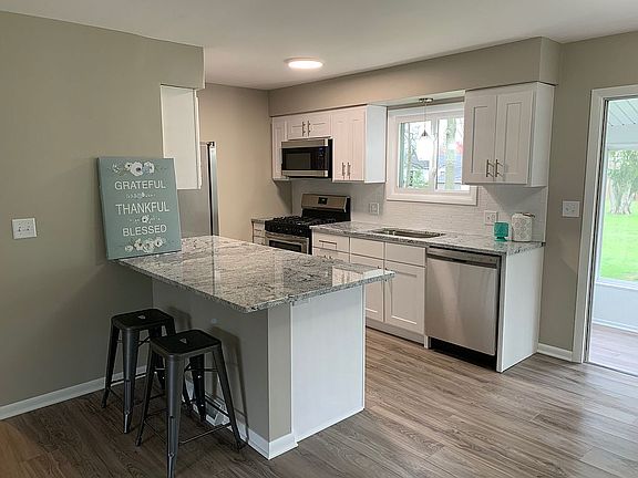 This completely remodeled three-bedroom house is ready to be your home! Whether you are just getting started or looking for a place to downsize this place is it! Just minutes from shopping and a few steps away from a great playground. Let me start with the beautiful open concept kitchen that was custom built by a local craftsman in Paris, Ohio. The cabinets are solid wood construction with soft close drawers and doors; accented with granite counter tops and tile backsplash. Kitchen comes with stainless appliances that were purchased from Grove Appliance; all warranties have been registered and will transfer with the property. Off the kitchen you will find a great sunroom to relax in that overlooks a charming back yard. Both bathrooms are brand new from top to bottom. The entire house has fresh paint and new flooring throughout, including waterproof flooring through the main living, tile in the bathrooms and plush carpeting in the bedrooms. This home offers more storage than you can imagine, each bedroom has a nice sized closet plus three closets in the hallway. The house also has an oversized one car garage with access to a huge basement. The house has new energy star windows installed and block windows in the basement. This property is a must see, the pictures do not do it justice. Call to schedule a showing today! 330-614-0018. Realtors are welcome.