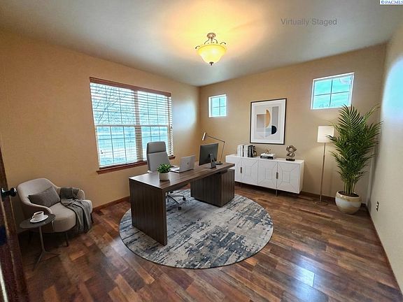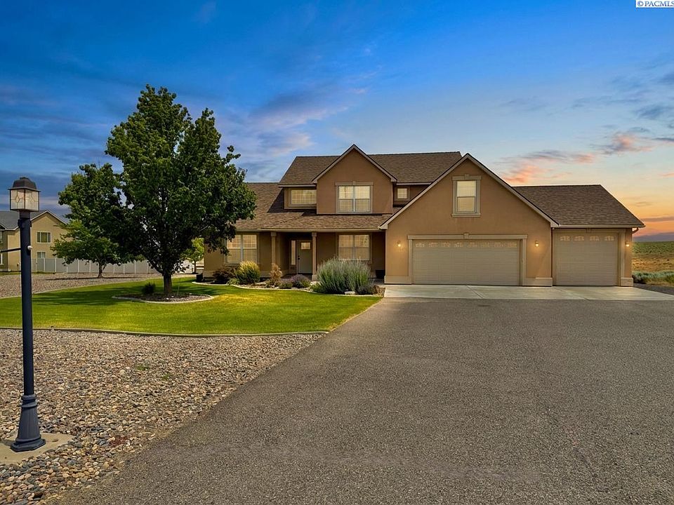 MLS# 290048 Panoramic Views, Timeless Design, and Room for A SHOP in Clodfelter Heights!Welcome to your dream home perched atop one of the most coveted locations in the Tri-Cities—Clodfelter Heights! This stunning residence offers breathtaking eastern-facing views of the canyon and beyond, situated on a professionally landscaped 2-acre lot that blends privacy, elegance, and comfort, and room for a shop.Step inside to a soaring two-story foyer that sets the tone for this impressive home. The main level is thoughtfully designed for easy everyday living and exceptional entertaining, featuring a spacious great room with a cozy gas fireplace, formal dining room, and a versatile den/office with elegant French doors. The heart of the home is the gourmet kitchen, complete with slab granite countertops, extensive cabinetry, and a charming bayed breakfast nook that’s perfect for morning coffee with a view.The private main-level owner’s suite offers a peaceful retreat, while the upper level is a dream for kids or guests—three generously sized bedrooms, a full bathroom with double sinks, a spacious family/playroom, and an expansive bonus room over the garage that’s perfect for a home gym, media room, or additional living space.Outside, enjoy the serenity and space of 2 beautifully maintained acres, ideal for outdoor entertaining or quiet evenings under the stars. With a roomy 3-car garage, ample parking, a new roof installed in 2021, and a stucco exterior that adds timeless curb appeal, this home checks every box. Don’t miss the opportunity to live in one of the Tri-Cities’ most desirable neighborhoods, where space, views, and quality construction come together in perfect harmony. This home has been virtually staged.