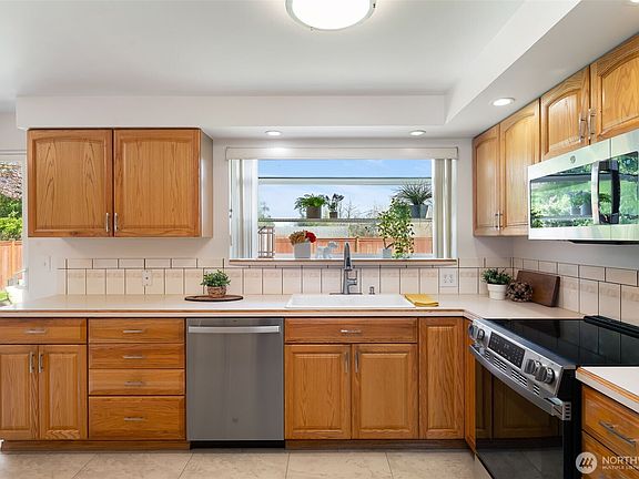 Lovingly maintained and move-in ready, this rare 5-bedroom home combines comfort, space, and thoughtful updates. Newly refinished oak hardwoods, all-new paint, lux carpet, and remodeled bathrooms create a fresh, inviting interior. Spacious kitchen featuring brand new appliances and flooring opens to dining area and family room with cozy fireplace. There is space for everyone with three bedrooms including primary suite on the main level, plus two big bedrooms upstairs. Sunny, level lot with a fully fenced backyard is perfect for entertaining, gardening, pets, and play. Oversize 2-car garage. Located in a quiet, friendly neighborhood just minutes from East Hill shopping, transit, and Kent Station. Pre-inspected for peace of mind. Do not miss!