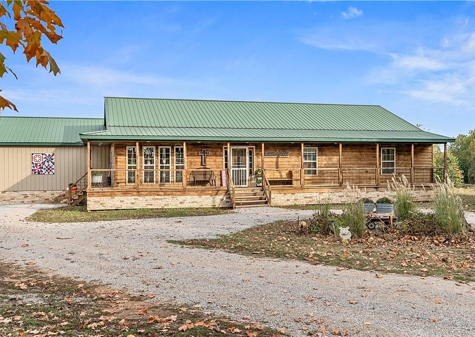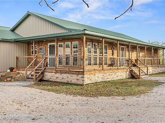 Ranch-style home with a full walk-out basement offering over 4,000 square feet of living space on approximately 10 acres m/l to be determined by survey. Cedar siding, stone accents, and a metal roof provide lasting curb appeal. A wraparound covered front porch, finished screened-in porch, and covered rear porch overlook peaceful views of the surrounding acreage, offering a private rural setting with room to spread out while still maintaining convenient access to town.