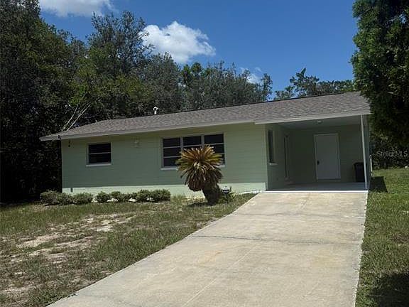 Huge Price Improvement! Motivated Seller! Now's your chance to own a charming two-bedroom, one-bath home at 22507 SW Beach Boulevard, Dunnellon, Florida, 34431, with 768 feet of living space and 1156 feet under roof. Perfect as a starter or winter getaway, for peace of mind, it features a 2022 water heater, 2023 roof, 2023 electric panel, 2021 AC, and all appliances, including washer and dryer. It has a six-foot privacy vinyl fence for a dog run outside of the patio and a separate laundry room. SW Beach Blvd is a great location with new construction in the area. The street will take you straight to the Community Center, the lake for fishing and outdoor activities. Just minutes from Rainbow River for kayaking, tubing, and canoeing. It’s close to Dunnellon’s shops and restaurants, and only twenty minutes from the World Equestrian Center. Rainbow Lakes Estates has a nice facility for families with a lake for fishing as well as a community center that can be rented for parties. Schedule your showing today!
