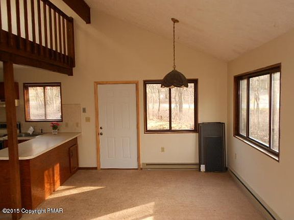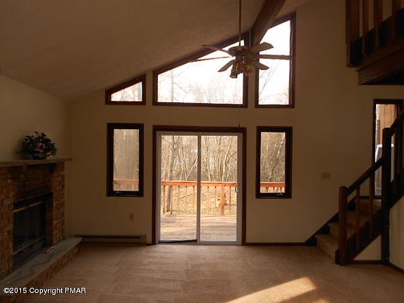 A Contemporary CHALET Home in Emerald Lakes with 3 bedrooms and 2 baths=1248 Sq.Ft. A bright open layout with cathedral ceilings, Living room has ceiling fan, brick front fp & propane heater & sliders to your private rear deck. Kitchen has large breakfast nook. Stackable W/D. Two nice sized bedrooms on 1st level with carpeting. Master Bedroom Suite on 2nd Fl. with Jacuzzi Spa & Sauna! Loft has a large skylight that pours the Sun in-use as office, yoga room, hobby room! Emerald Lake has great amenities & is OPEN YEAR ROUND with an ''INDOOR POOL'' 5 Lakes, 2 Beaches, 2 outdoor pools, 2 tennis courts, 2 basketball courts, playground, recreation-game rm, restaurant & bar, garbage, clubhouse, road maintenance, security. The House is Right around the corner from CLUBHOUSE, POOL, RESTAURANT!