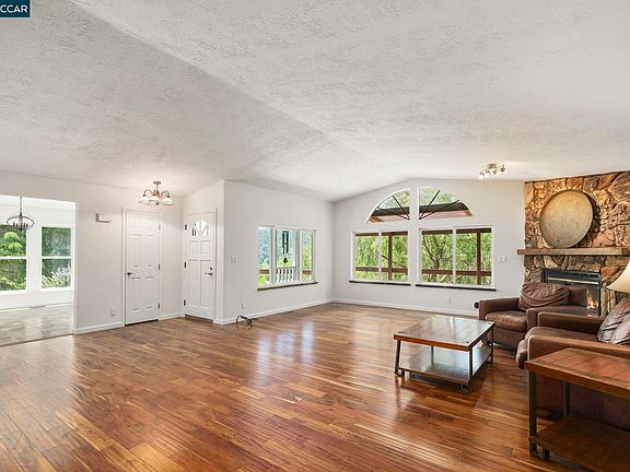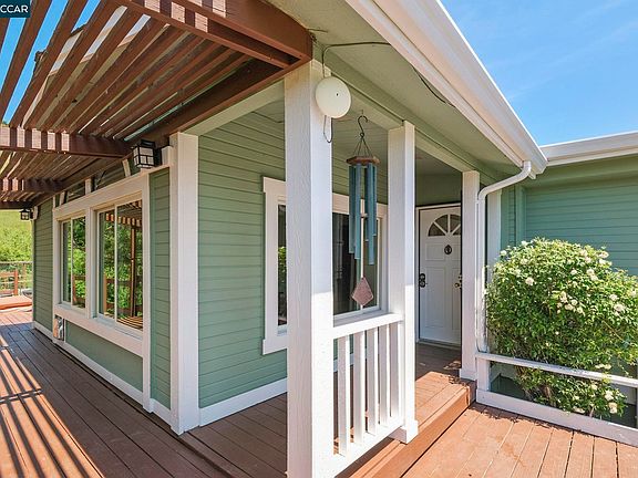 Discover the perfect blend of country tranquility and city convenience in the Briones Valley, minutes from Orinda/Hwy 24. This exceptional 8.27-acre ranch estate is an equestrian paradise. The main house offers single-level living with 3 bed/2 bath, over 2,000sqft of light-filled space. Enjoy the open great room, vaulted ceilings, cozy fireplace, a formal dining room with built-ins, chef’s kitchen with granite counters, stainless steel appliances, and a gas Viking range. The primary suite with a spacious closet, oversized shower w/dual shower heads, and French doors leading to a back deck. Additional bedrms provide comfort with wood floors and ample storage. A wrap-around deck with built-in spa offers stunning valley views. Practical amenities include central heating, skylights, and a detached garage/shop with a 1-bedr/1-bath apartment. The property boasts eco-friendly solar panels (owned), plus a fenced garden, chicken coop, and private outdoor spaces, all with panoramic valley views. This ranch estate offers a rare opportunity for private oasis close to mile of trails for riding or hiking thru Briones Regional Park.