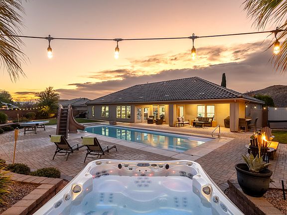 Business in the front, party in the back! This beautiful Washington Fields home has been refreshed with newer carpet, blinds & paint, making it move-in ready, freeing you up to spend time in the expansive resort style, east facing backyard paradise! 2 primary bedrooms, cozy fireplace, den, large pantry, front courtyard & RV parking make living comfortable while the backyard makes life fun!