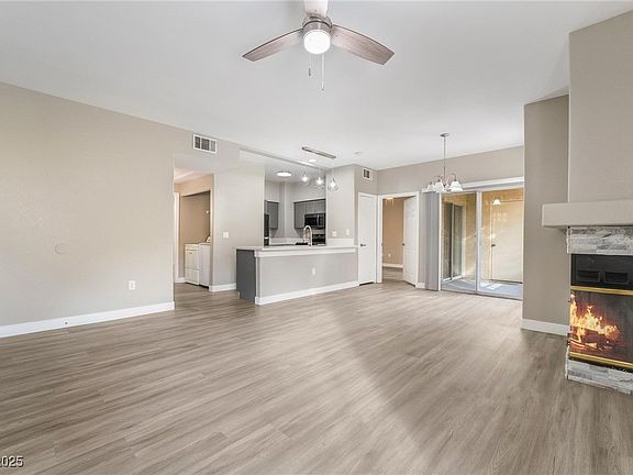 This beautifully updated 2-bedroom, 2-bath condo in the Legacy Condos of Green Valley is move-in ready! Located just minutes from the 215, shopping, dining, gyms, golf, and parks, it's the ideal spot to live, work, and play. Features include luxury vinyl plank flooring, quartz countertops, black stainless steel appliances, and a rare living room fireplace. The primary suite offers a spa-inspired walk-in tile shower and plenty of space to relax. A detached 1-car garage provides convenience, while the community offers two pools for your enjoyment. Don't miss your chance to call this stylish condo home!