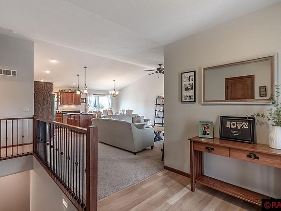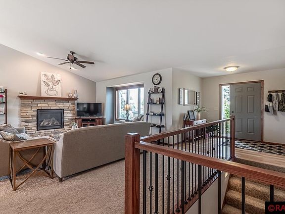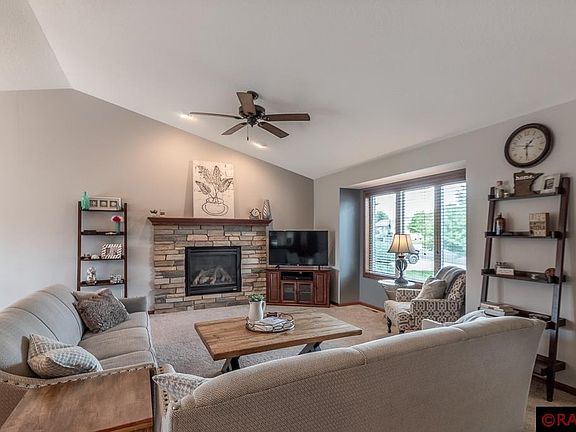 You won’t want to miss out on this fantastic rambler situated on a corner lot in Upper North Mankato! The main floor entry opens beautifully to the main floor living room, dining area and kitchen spaces -- all accented by a vaulted ceiling. A gorgeous stone-faced fireplace creates a cozy atmosphere in this living room matched perfectly with the warm, neutral decor. The thoughtfully designed kitchen boasts sleek stainless-steel appliances, granite counter tops, mission style cabinetry, and center island with breakfast bar seating. The informal dining area offers access to the back deck. The main floor also boasts 2 bedrooms including the Primary Suite with tray ceiling, walk-in closet, private full bathroom with dual sink vanity, and separate tub/shower. The other bedroom features a customized closet with multiple shelving and hanging system. Finishing the main level is a second full bath. Head down the open staircase to the finished lower level you will be pleased with the spacious family and recreation room complete with a full daylight window. You will also find a handy storage room off the rec area which could be used for several purposes as desired. Rounding up this level are two additional good-sized bedrooms,  the third full bath, and the mechanical/laundry room. Outside you will find plenty of green space, finished 3-stall garage, and mature landscaping.