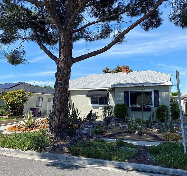 Welcome to the community of Aircraft Manor in Long Beach. This area is close to Stearns Park and conveniently located to many shops, restaurants and markets. Enjoy this special neighborhood with mostly single level homes situated on larger lots. This clean and remodeled home features: Fully landscaped front yard in all drought tolerant plants and rocks for low maintenance upkeep. Enter this 3 Bedroom 1 Bath tradition home to a nice and bright living room, with vinyl flooring, crown moldings, recessed lighting and large front picture window. Moving into the kitchen area there is a built-in breakfast and dining area situated between the kitchen and living room. The fully remodeled kitchen features stainless appliances, a stand alone range with gas burners, stainless refrigerator, dishwasher and range hood. The cabinets are a shaker style with corian counters. The stackable full size laundry is just off the Kitchen area next to a Dutch door to the backyard. The fully updated and remodeled Bathroom has a tub shower and pedestal vanity, and vinyl flooring. The three separate bedrooms are good size with vinyl flooring and ceiling fans. The backyard is very spacious and has a wooden overhang, stand along patio area for shade and entertaining. The two car garage is full size and has a custom built storage shed behind the garage for secure storage. Enjoy and relax in the oversized backyard with grass and landscaping which has plenty of room for any and all outdoor activities.
