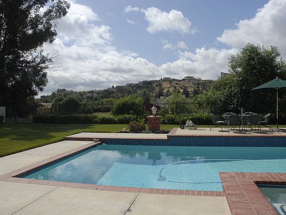 Spacious Single Story Estate home (built in 1994) on large 21,000+ sq ft flat lot with great canyon views in ultra quiet street in one of the best neighborhoods in Chatsworth. Live in a Peaceful Serene environment with no neighbors adjacent to the rear of the property, and wide open views from rear and side yard. Even with a large 50 ft pool along with spa and adjacent patio with gas fire pit, there is still a huge flat grassy play area beyond the pool on one side and huge RV parking area on the other side of the house. RV parking is large enough for a full size 40+ ft Custom Motor Home plus boats, jeeps and toys. RV access is super easy to maneuver into. House features include: 4 bedrooms, 3.5 bathrooms, Formal Living Room, Separate Family Room with Fire Place and vaulted wood beam ceilings, Formal Dining Room, Large Kitchen with New Stainless Steel Appliances, Hard Wired Visual Surveillance System,Laundry Room, Copper Plumbing, Central Heat and A/C, 3 Car attached Garage and much more. This property is a must see.