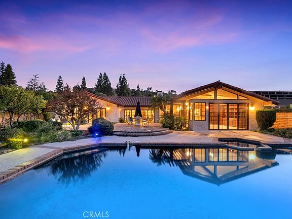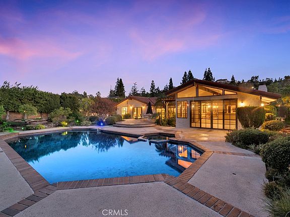 Welcome to a truly special Chatsworth residence that blends timeless character with thoughtful modern enhancements. Nestled in one of Chatsworth’s most sought-after enclaves where homes rarely come to market, this 5-bedroom, 4-bath property offers nearly 3,500 sq ft of living space on an expansive 0.40-acre lot. Meticulously cared for and upgraded with quality materials, key features include a US tile terracotta ceramic roof and refinished antique Saltillo tile flooring (2025), plus a dual-zone HVAC system with major updates—one zone fully replaced in 2023. All exterior and interior walls are insulated, a rare feature ensuring year-round comfort and efficiency. The exterior was refreshed in 2022 when the entire home was painted with Ceramic Shield paint. The front of the home showcases manicured landscaping, a large gated driveway with RV potential, and a 4-car garage with overhead storage. A gated entry leads through a colonnade to a peaceful courtyard and a refinished vintage fountain. Through the front door, you’re welcomed by a step-down living room with vaulted ceilings, a fireplace, and large patio doors opening to the backyard. The west wing includes a spacious great room with new carpet, vaulted ceilings, a fireplace, a wet bar, built-ins, and abundant natural light. The kitchen has been almost entirely rebuilt with newer appliances, a large granite center island with a sink, plenty of cabinetry, a breakfast area, sliding door access to a side patio, and a formal dining room. This wing also features a generous bedroom with courtyard access—ideal as guest quarters, studio, or office—plus a renovated hallway bathroom and large laundry room with built-in storage. In the east wing, the primary suite offers vaulted ceilings, sliding door access to the backyard, a walk-in closet, and an ensuite bathroom. Two additional hallway bathrooms are large in size and serve the remaining three guest bedrooms, which offer ample space and storage, including one by the courtyard with refinished parquet flooring—perfect for a home office. The backyard offers a large pool, multiple patios, and lush landscaping surrounded by six mature citrus trees—two Navel orange, two Valencia orange, one Meyer lemon, and one kumquat. Don’t miss this rare opportunity to own a one-of-a-kind home in Chatsworth—minutes from hiking trails, parks, and mountain views.