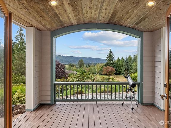 This custom rambler sits on over 4 private acres in a quiet neighborhood of high-end homes. Vaulted ceilings & walls of windows offer stunning mountain & valley views. Epicurean kitchen w/dual gas & induction cooktops, Thermador paneled refrigerator & huge walk-in pantry. Retreat to the primary suite w/5-piece bath, 2 walk-in closets & French doors out to a hot tub. The multiple Trex decks + awnings are the perfect place to unwind or entertain. Featuring geothermal heat, new carpets, automatic 18KW generator, 4-car garage with 1/2 bath, RV parking & shop. Conveniently located within a 5-mile radius to HWY 2, 522. High-speed fiber internet is included in dues but you can opt-out of the HOA.