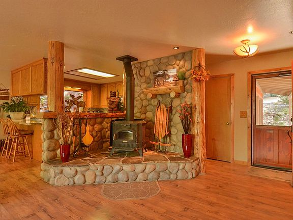 Beautifully updated single story with custom touches throughout. Nestled at the end of Cedar Pines near downtown Twain Harte - great neighborhood with no through traffic. Public water and sewer. Level parking with attached garage. Central heat and air conditioning plus nearly new wood burning stove surrounded by custom River Rock fireplace and hearth. Loads of storage under house. Perfect end of cul-de-sac location. All reports available. Pest clearance pending.