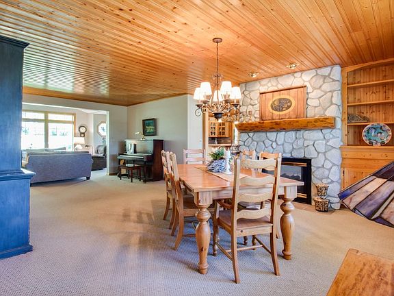 Escape to serene country living in this picturesque retreat, nestled on just under 5 acres of tranquil land. This custom built 4 bedroom, 3.5 bath home exudes charm with its abundance of natural woodwork and sprawling living space. The main floor primary suite is a sanctuary unto itself, featuring a walk-in closet, separate shower, and a clawfoot soaking tub. Delight in the warmth of the country kitchen, complete with an eating bar and a cozy breakfast nook boasting a charming window seat. Upstairs, two spacious bedrooms are connected by a convenient Jack and Jill bath. The lower daylight walkout level offers even more space, with a large family area anchored by a gas fireplace, an additional bedroom, full bath, sauna, and ample storage. Plus, indulge in the ultimate convenience with a separate 27X30 shop housing a 2 bedroom, 1 bath apartment with its own kitchen, living area, and relaxing deck. This property offers the perfect blend of convenience, and country charm for those seeking a truly special retreat.