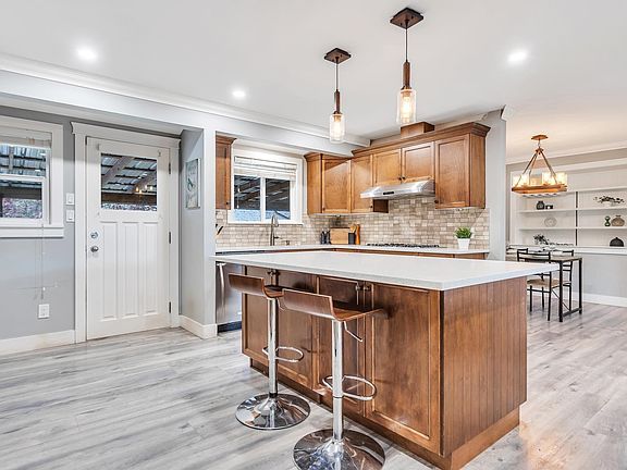 The main floor offers a bright open-concept layout with a spacious kitchen featuring a large eat-up island, quartz countertops, ample cabinetry, stainless steel appliances, a 5-burner gas stove, and a built-in wall oven. The living and dining areas are ideal for entertaining, and open onto a deck and fenced backyard. This level also includes 3 bedrooms, including a primary suite with an updated ensuite, plus a stylish family bath. The lower level provides 1,350 sq. ft. of fully renovated space—perfect for extended family or rental income. Highlights include a contemporary kitchen with a waterfall-edge quartz island, 5-burner gas stove, 2 updated bathrooms, and separate laundry. This property may qualify for rezoning from RS3-i to RS7 (buyer to verify with the city).