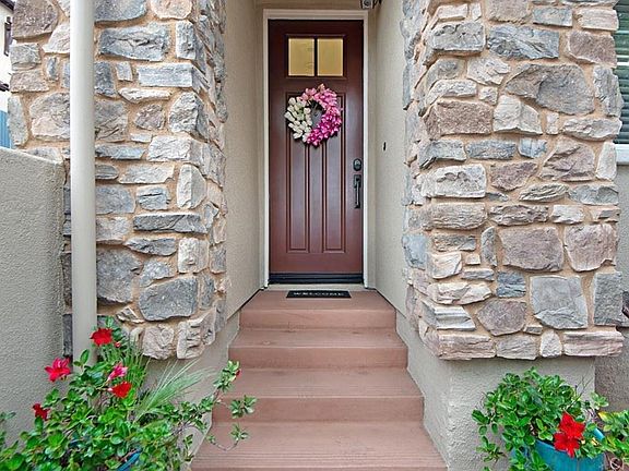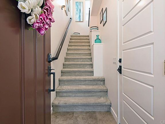 Finally, a Prime corner location with Stunning Mountain Views and a Great Pool and community area. 1 of only 6 units that have a downstairs porch, private sidewalk to entry, and those great views. 3 bedrooms, 2.5 baths, this 1201sf Beautiful Townhome has a direct access 2 car oversized garage. No neighbors above or below you. Built in 2013, it has been freshly painted with soft white custom paint and features dual pane windows, a tankless water heater, high-speed CAT 5 wiring, SmartHome Control 4 System, AC, SS appliances including a double door refrigerator. The Main level has open concept living room/dining room, kitchen, a bedroom with a close-by ½ bath. There is also a newer stacked large W/D in laundry closet, and a private view balcony. The kitchen features a separate pantry and island with breakfast bar seating overlooking the open living and dining area. Granite counters, designer backsplash and modern cabinets are in kitchen and baths, ceiling fans in all bedrooms and living area. The top floor features a Master bedroom with sensational views, dual sinks in bath, walk in closet and separate loo. There is a 3rd bedroom with views, and a stylish full hall bath. You will love this home for many reasons: Only minutes to I-5 & Encinitas/Carlsbad beaches. Low $217 HOA, and $930 yearly Mello Roos. Smart Home offers a coded smart front door lock, outside camera and smart monitor in the Master bedroom. This Solaire Community within Old Creek Ranch offers a large private community pool, spa, barbecue areas & gas fire pit with mountain views. Just step out the community gate to enjoy over 1,000 acres of open space and 19 miles of hiking/biking trails. This master planned community near San Elijo Hills provides easy access to all major freeways and beaches. The Award-winning local schools include: Rancho Carrillo Elementary School, San Elijo Middle School and San Marcos High School. Enjoy Morning breakfast at Mariah's or just 2.4 miles west to the La Costa Town Square where you will find marketing at VONS, visit Petco, 24 hr fitness, Michaels, Jamba Juice, Chipotle, Jersey Mikes, Walgreens, Banks, Starbucks, movies at the Cinepolis, and much more. Wow! It's your lucky day.