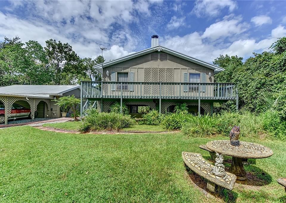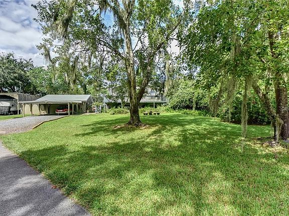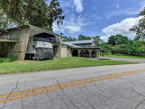 Water font home could be yours to make your own Water Palace. 150' of canal front with direct open flow access less than 1/4 mile paddle down the canal to beautiful St John's River. Large boat house, and dock, wrap around porch, huge deck for entertaining, fish cleaning station, cook house w/ plumbing, electric and AC. Storage for all your toys and tools in the 2-car garage with a 2-piece bathroom, separate workshop where you can tinker, create and enjoy your hobbies, whether it's woodworking or cars, you can do it all here. And for the big toys, there is a covered RV port, two space covered car port and a separate shed. This interior of this beautiful home features a warm and inviting rustic feel with a wood burning brick fireplace, Knotty pine walls and ceilings with built-in cabinets. Open concept living room dining room, kitchen with a breakfast bar and dinette area. Butcher block kitchen counter tops, solid pine cabinets and built in wine rack. French doors leading to a 300 sq. ft. Florida room under AC with so much of natural light and window all around. Flex room for an office or family room, or convert to another bedroom *All information to be verified*