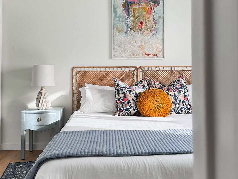 Kitchen:Mid-century inspired, perfect for whipping up meals after a long day at the beach. Includes a full-size fridge, range, cooktop, microwave, and dishwasher and all necessary cooking equipment.