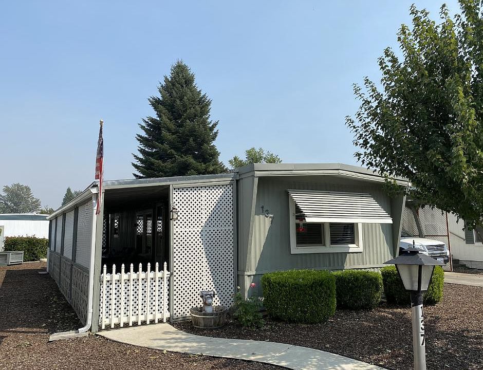 Come Home to this tastefully updated home in the desirable Aspens on the Creek 55+ Park. Home features beautiful low maintenance yard outside, with two large sheds offering ample space for storage. The covered carport and covered patio will keep you out of the elements and keep your belongings safe, along with window awnings outside to keep you cool in the hot summer months. Walk inside the home to see fresh paint on all the walls and ceiling, a newly remodeled kitchen, new light fixtures, new window coverings, and built in storage features. This home is move in ready, with all appliances include. You won't want to miss this!