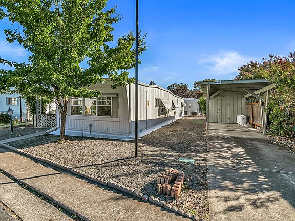 This move-in ready home is conveniently located in a senior park near shopping, restaurants, and public transit. This home offers both comfort and accessibility. Inside you'll find fresh interior paint, new carpet, updated fixtures, and a fresh tile backsplash in the kitchen. Enjoy low-maintenance landscaping, a covered patio perfect for relaxing, and room for small garden beds. The attached carport provides parking for two vehicles plus a storage shed for your tools and hobbies. With new metal skirting, central heating and air, laundry hookups and a light and bright atmosphere, this home is a rare find! Space rent is $800 per month, 2 pet limit under 25 lbs.