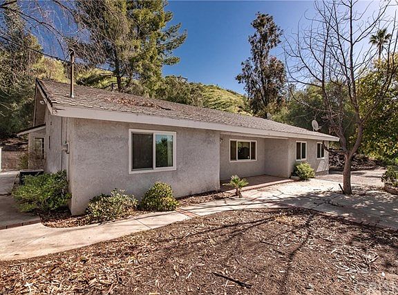 Saugus lover's dream! Unbelievably rare property, almost two acres! The rustic driveway leads you to an oasis of hillside trees, valley views, and a one story home featuring over 2,100 square feet of living space, four bedrooms, three baths, an open gourmet kitchen with granite counters, center island and pendant lighting that connects to the large family room with fireplace. A laundry room/service area is conveniently located between kitchen and garage for easy household chores such as unloading groceries. Sold strictly AS-IS. Employees and family members residing with employees of JPMorgan Chase Bank, N.A, its affiliates or subsidiaries are strictly prohibited from directly or indirectly purchasing any property owned by JPMorgan Chase Bank, N.A.