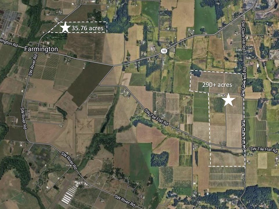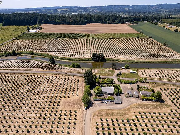 FARMS LIKE THIS DO NOT COME OFTEN... over 325 acres of land (300+ farmable) - with primary and supplemental water rights as well as rights for water storage in large reservoir. 2 large wells producing 1 @ 125/gpm and 1 @ 175/gpm. Extensive piping system from Tualatin River to River Rd parcel and then underground pipes to Tile Flat Rd Parcel. Currently covered in hazelnuts and cane berries. Property includes 2 manufactured homes and 2 labor houses (also manufactured dwellings). Detached garage, general-purpose building & machine shed are also located on Tile Flat Rd parcel.