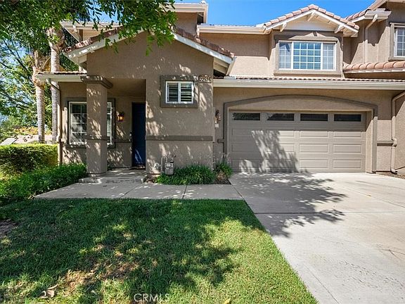 Nestled in the private, gated community of Grand Canal, this beautifully maintained former model end-unit townhome offers 3 spacious bedrooms and 2.5 bathrooms. Filled with natural light, the home features an inviting living room with a dual-sided fireplace that opens to the dining area. The kitchen includes a breakfast bar, ample counter and cabinet space, stainless steel appliances, and a window overlooking the backyard. Sliding doors lead to a private, gated patio with stone pavers—perfect for relaxing or entertaining. Upstairs, the generous primary suite boasts a walk-in closet, en suite bath, ceiling fan, and private balcony with garden views. Neutral tile flooring flows through the main level, while plush carpet adds comfort upstairs. Community amenities include a sparkling pool with lounge area, outdoor shower, and a tot lot. Additional features: two-car attached garage with overhead storage and a prime location near the 215 Freeway, shopping, dining, Loma Linda University, and UC Riverside.