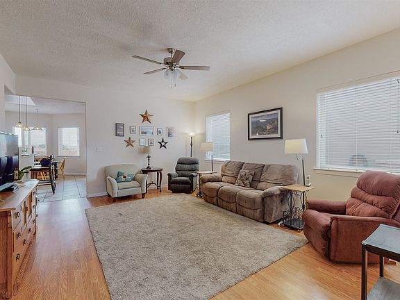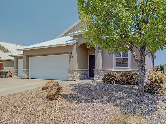 Super location and 4 bedroom home with awesome mountain views from your private backyard. With Los Milagros park behind you and ample open space, you'll have the absolute best spot for balloon fiesta! Inside you have your 2 living spaces as well as a roomy kitchen and breakfast nook. Enjoy the shelving and space in your 3 car garage but know you have backyard access as well. Easy landscaping in front & back. Metal roof. NO HOA or PID! GREAT SCHOOL DISTRICT!