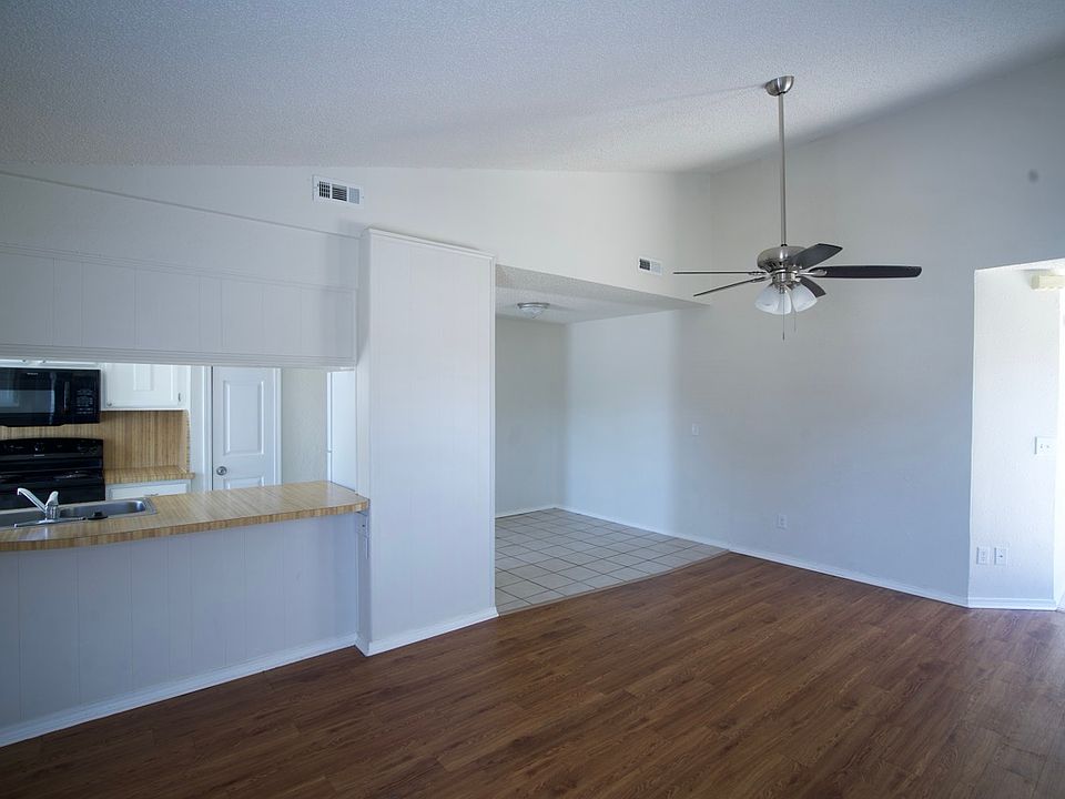 Fenced yardOff-street parkingWood-look flooringPlenty of cabinet spaceFull-size appliancesIn-unit laundryVaulted ceilings