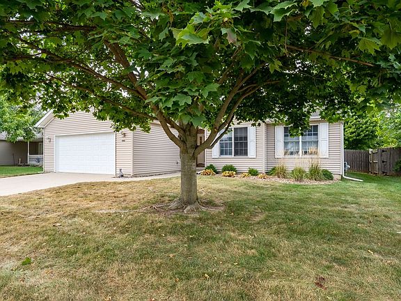 Take a peek at this beautiful, custom built home in North Fields subdivision! This ranch home has an open floor plan and cathedral ceilings, making it very inviting. Hardwood flooring flows from the minute you enter the front door, give warmth! The main floor was re-painted in 2022. Living room has a gas fireplace and stunning custom shutter blinds becoming the focal point of the space! Take a step further into the kitchen where you will find quartz countertops and stainless-steel appliances. Laundry is just steps away! Garage is off of the laundry room and has extra storage space while still fitting 2 cars comfortably! Primary bedroom has a walk-in closet, and walk-in shower was replaced in 2021. Bedrooms have spectacular window covering staying for the new owners! Very inviting rooms with good closest space! The fended backyard is conveniently accessed from the sliding glass door off of the dining area, ready for a hot tub (breakers in place). The basement is unfinished but very clean and completely painted this year!! Rough-in for bathroom in place along with 2 large egress windows, making this perfect for the imagination! Potential for 2 more bedrooms or large living space and bedroom. This home shows ownership and pride!! It is a very clean and well-maintained home! Don't miss the opportunity to see it!