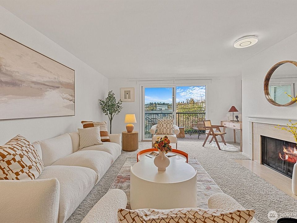 Enjoy peace of mind in this secure, gated building while experiencing the perfect blend of city convenience and quiet comfort in this west-facing home filled with natural light and open views. The spacious living area flows to a private balcony — perfect for morning coffee or sunset wine. Inside, find modern updates: quartz countertops, oak floors, newer carpet and refrigerator, plus a refreshed shower with marble-look tile. Everything you need is steps away — two storage spaces, recreation room, sauna, and outdoor pool are all on the same floor. With in-unit washer/dryer, covered & guest parking, HOA covering most utilities (even internet!), and close to tech hubs, Whole Foods, and Interbay Golf, this home makes everyday living effortless.