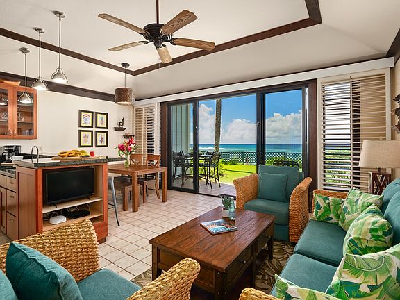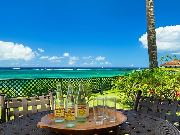 This is a leasehold property. At Kiahuna Plantation in Poipu Beach, opportunities like this are rare. This one-bedroom, one-bath condominium is one of only a handful of oceanfront units in the resort—and the views set it apart. From the living room, lanai, or even the kitchen, you can take in wide, unobstructed ocean vistas and sunsets that define the experience of being directly on the shoreline. Very few locations within the property offers this perspective.<br><br>The condo’s ground-floor, no-stair entry makes beach access simple. Inside, it has been fully renovated: a kitchen with new cabinetry and granite countertops, tiled flooring throughout with carpeting in the bedroom, and a bathroom completely redone with a walk-in travertine-tiled shower, granite vanity, and new cabinetry. A washer and dryer adds even more convenience. Furnished with island-style décor, a king bed, and a sleeper sofa, the unit comfortably accommodates four.<br><br>This condo also benefits from excellent airflow and an inviting, easy feel—qualities that naturally come with a true oceanfront position.<br><br>Kiahuna Plantation is the only condominium property in Poipu located directly on a swimming beach. Resort amenities include a pool, athletic club, and expansive grounds, with restaurants and shops within walking distance.<br><br>Currently operating as a high-occupancy vacation rental, the property is fully turnkey—renovated, furnished, and established in a successful rental program.<br><br>Ready for a tour? Cut and Paste this link into a new browser window; https://bit.ly/46VCFqX