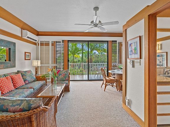 This is a bottom-floor corner unit, which means fewer neighbors, more windows, and great trade winds! Enjoy the ample lanai, fully appointed kitchen, updated bathroom, tranquil bedroom and gentle breezes from jalousie windows. AC was recently installed for those warmer south shore summers. A short stroll through expansive lawns brings you to resort activities including a perfect swimming beach complete with separate shallow area. These luxuries come with zero maintenance, as the HOA fee includes all resort amenities, gym access, poolside drink/food/towel service, 24-hour security, parking, onsite restaurant, utilities and more. Your perfect island getaway can be a vacation rental and, if you wish, furnishings and future bookings can convey with the sale.