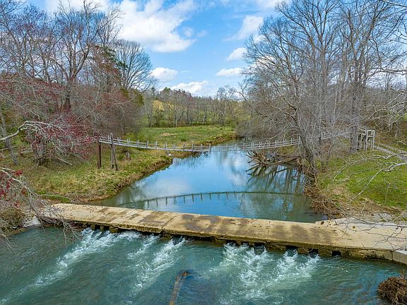 Extremely private and secluded 340 acre farm in Bland County, VA! Borders Kimberling Creek at the front & one side and the Jefferson National Forest at the rear. Approx. 1/3 in flat pasture land and the rest in woods and trails. Three ponds, one huge pond! Several barns and outbuildings, fenced garden area, and 2 wells. Original home was renovated and added onto with log siding, wood interior, 28x16 gourmet kitchen, lots of stainless appliances, and huge walk-in pantry. Enormous living area with fireplace & log pass through. Upgrades throughout home including jet tub, claw tub, steam shower, solid surface countertops, central vac, 2 heat pumps, primary bedroom on main level, and large screened & open porches. Log guest cabin included! Approx. 4 miles of trails throughout the property for walking, hiking, or ATV riding. Plenty of wildlife for hunting or watching. This farm is one of a kind! No driving by, locked entrance.