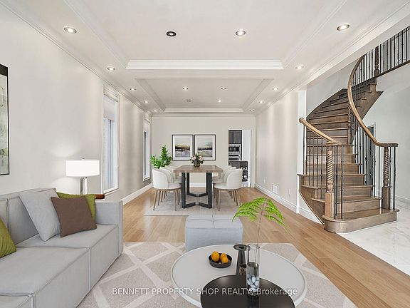 Nestled on one of Alta Vista's most prestigious streets, this custom-built 5 bed, 5 bath luxury home (including 2 ensuites) offers refined elegance and thoughtful functionality for the most discerning buyer. Backing onto tranquil green space with no rear neighbours, enjoy unmatched privacy and serenity in a home that blends sophisticated design with family-friendly living. Step through grand arched doors into a spacious formal living room with gleaming hardwood floors and timeless charm. The extended dining room is ideal for entertaining, with space for large gatherings or intimate family dinners. At the heart of the home is a gourmet kitchen designed for both style and function, boasting top-tier appliances, custom cabinetry, expansive counters, and a layout perfect for hosting. East-facing windows flood the main level with natural light and offer serene views of the beautifully landscaped backyard, a private oasis with lush gardens and elegant hardscaping. A stunning spiral staircase leads to 4 generous bedrooms upstairs. The primary suite is a true retreat, complete with an oversized walk-in closet and a spa-like 5-piece ensuite. Each bedroom offers ample closet space and access to well-appointed bathrooms. The lower level adds incredible versatility with a wet bar, large den ideal for a home theatre or office, gym space, full bathroom, and an additional bedroom - perfect for guests or extended family. Located minutes from top hospitals, Bank Street, Highway 417, parks, and walking paths, this home provides ultimate convenience. With architectural elegance, practical luxury, and thoughtful detail throughout, this Alta Vista gem offers a rare opportunity for refined living in one of Ottawa's most coveted neighbourhoods.