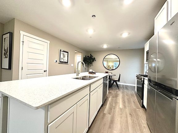 Discover yourself at 2253 Riesling Rd., Oswego, Illinois, a beautiful new home in our Sonoma Trails community. This townhome will be ready for Winter move-in! Homesite includes a fully sodded yard that is maintained throughout the year as well as snow removal in the winter. The Fairfax townhome plan offers over 1,500 square feet of living space with 3 bedrooms plus a loft, 2.5 baths, a mudroom and a 2-car garage. As soon as you step inside you are greeted by an open and airy space featuring 9ft Ceilings and loads of natural sunlight. The expansive kitchen is centrally located providing separation between your living and dining room. Additionally, your kitchen features designer 42-inch cabinetry, a spacious island with quartz countertops, and pantry. Heading up the beautiful rod iron staircase upstairs you will enjoy your large primary bedroom with a walk-in closet and connecting en suite bathroom. The rest of the upper level features a laundry room, secondary bedrooms with a full second bath, and linen closet. You'll find luxury vinyl plank flooring throughout the main level living space, bathrooms, and laundry. Impressive innovative ERV furnace system and a tankless water heater round out the amazing features this home has to offer! Home is located in the amenity filled Sonoma Trails Community. All Chicago homes include our America's Smart Home Technology, featuring a smart video doorbell, smart Honeywell thermostat, smart door lock, Deako smart light switches and more. Photos and Real House may vary it's the layout and structure is same.
