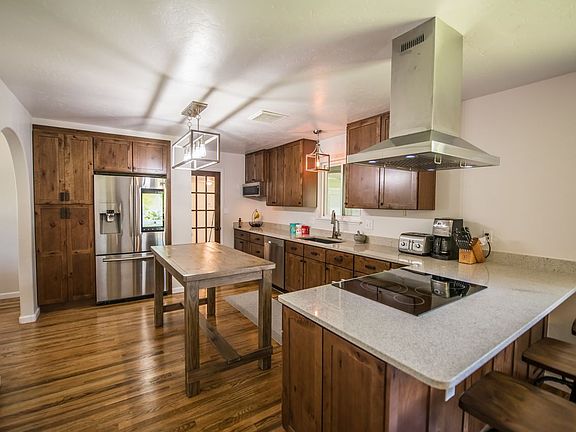 Excellent close in Redlands Ranch style home on almost half with 4 bedrooms, 2 bathrooms, 2 car garage, a shop and NO HOA!! Fully remodeled kitchen with all new cabinetry, granite counter tops, and stainless steel appliances. The master suite has barn doors leading to the master bath. The home has two living areas, huge laundry room and beautiful hardwood floors! Attached 2 car garage with a bonus 1 car workshop located on the south east side of the house. A huge screened in patio completes this amazing backyard. The main part of the home has a BreezeAir with multiple drops and up ducts and the family, new laundry area, and 4th bedroom suite all have forced air heat and refrigerated air. The shop is attached, but has its own access door and garage door, making a great man cave!