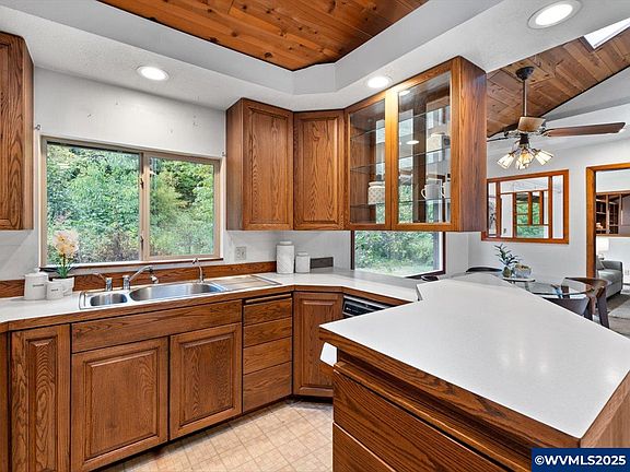 Partially remodeled bathroomSingle-level homeCreek frontageLarge windowsVaulted ceilingsClassic wood cabinets
