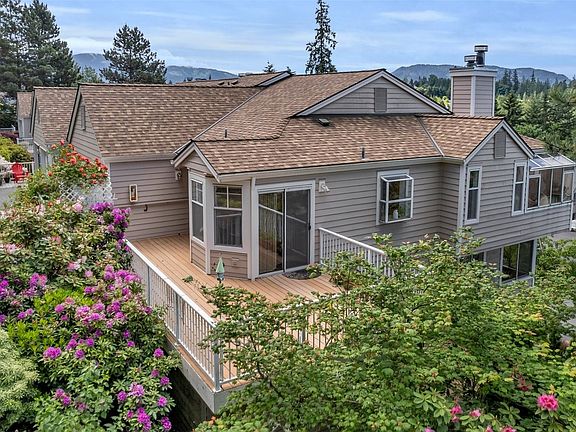STUNNING 1 of kind- 3 BD/3 BA Hilltop Village townhome w/a PRIVATE ELEVATOR! Large custom sunny entertaining deck. "Top of the hill" views captivate! Beautiful hardwoods flow thru the main floor. Remodeled kitchen w/custom cabinetry, stone counters, SS appl & breakfast nook. Sunny open design living & dining w/gorgeous fireplace. 2 cozy sun porch's- favorite lounging spot! BD & 3/4 bath on main floor. Huge primary suite on lower level (remember the elevator?) boasts luxurious 3/4 bath & large closets. Jr suite w/bath+sun porch. Attached 2-car garage! MUST SEE! Amenities & social activities incl: indoor pool, clubhouse, classes, tennis, pickle ball, putting green, pea patch, trails, social/cultural & sporting events.
