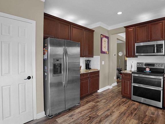 Discover this north facing 4 bedroom, 3.5 bath home featuring a large backyard with a deck, raised bed garden, and mature trees; perfect for outdoor living! The first floor is an open yet functional layout with hard floors and a private den/office with large windows for light, and a gourmet kitchen with soft-close cabinets, granite countertops, and stainless steel appliances. The second floor offers four spacious bedrooms, highlighted by a luxurious owner's suite that has vaulted ceilings and a deluxe owner's bath with walk in closet. The basement provides over 500 finished square feet, complete with a wet bar and a full bath fit to match the house.