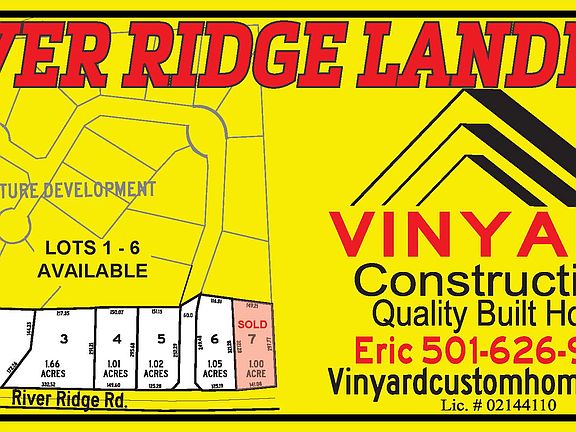 Do you need more room to spread out? Come see the new 1 ac plus size lots in one of Saline County's newest subdivisions, River Ridge Landing! Country living minutes from town, Benton Schools, Caldwell Elementary. The houses shown are examples of buildable plans. You can bring your own plan or work with Eric and Kathy with Vinyard Construction to design and build your dream home! 2,200 SF minimum and bill of assurance does apply.This home features a large open floor plan, 3 Bedroom, 2.5 bath, office, and dining area. This house is loaded with custom features including site finished oak hardwood flooring, built-in locker / drop area, granite countertops and more. More upgrades include a high efficiency HVAC system and tankless water heater. Give Eric and Kathy a call or text to schedule a tour of the available lots and start making your dream home a reality!!