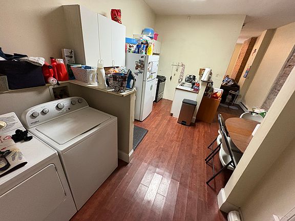 This 4 bedroom is town-house style. The living room and eat- in kitchen are on the first floor and the bedrooms are on the second and third floor. The best part of this rental? The bedrooms are huge plus there's a washer and dryer in the unit.