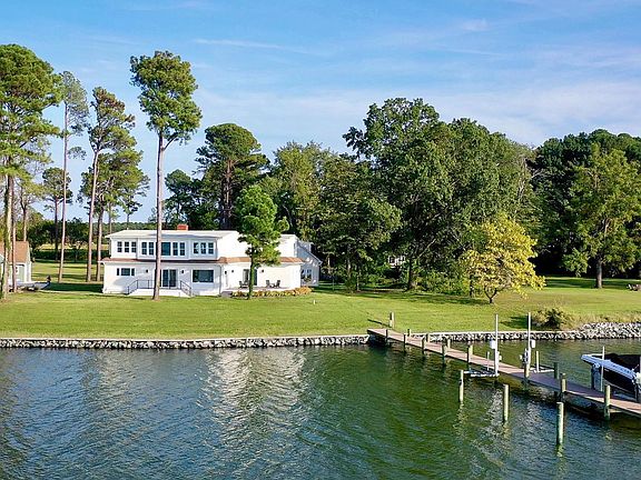 The Ultimate Harris Creek Retreat—Unrivaled Views. Room to Spread Out. Sunsets You’ll Never Forget. Welcome to your family’s forever getaway: a fully renovated waterfront estate on 2.4 acres with 240+ feet of direct water frontage. Perfectly positioned for stunning western views over Harris Creek, this exceptional property includes a reimagined main residence, newly constructed three-bay garage with guest suite, and a thoughtfully designed pool house for seamless indoor-outdoor living. Enjoy water views from nearly every room. Inside, a welcoming foyer leads to a dramatic great room with panoramic vistas and open flow ideal for entertaining. The sleek kitchen features an oversized island, 48” fridge, six-burner range, drawer microwave, beverage cooler, and ample cabinetry. A cozy fireside game room and a whimsical nautical-themed powder room add charm. A main-level bedroom with en-suite bath offers comfort for guests or those with mobility needs. Step outside to a large WearDeck composite deck with views of the new 100’ pier, 10,000 lb boat lift, and jet ski lifts. The approx. 3-ft MLW (buyer to verify) allows for a variety of watercraft. Spend your days tubing, water skiing, or fishing from your backyard. Upstairs, the expansive primary suite spans nearly the full width of the home, with tranquil water views, spa-style bath, walk-in closet, and space for a future sixth bedroom (once public sewer arrives, expected in 2026). Two additional bedrooms—one en-suite and one with shared bath—plus laundry complete the upper level. Nearly every bedroom offers views of the water or pool. The brand-new 40' x 20' pool features a sunning ledge, bubbler, automatic cover, and is pre-plumbed for a slide. The pool house adds a full bath, kitchenette, lounge area, and pool equipment/storage room with room for a future heater. The detached garage offers even more flexibility: a finished guest suite with en-suite bath, mini-split HVAC, and wet bar rough-in. The lower garage level—also with water views—makes an ideal workshop, studio, or creative space. With an elevated lot above the floodplain, new 5-bedroom BAT septic system, and anticipated sewer connection, this home is future-ready. All systems have been updated: dual-zone HVAC, electrical, plumbing, and roof. Exterior upgrades include Hardiplank siding, composite trim, and low-maintenance decking. A new tar-and-chip road adds smooth, low-maintenance access, rounding out the property’s turnkey appeal. Set along the revitalized shores of Harris Creek—home to the largest oyster restoration project in Chesapeake Bay history—this legacy retreat blends eco-conscious living with timeless waterfront luxury.