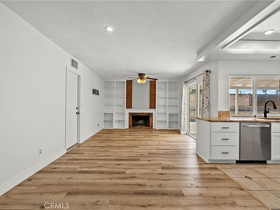 Welcome to this charming 4-bedroom, 2-bathroom home with RV parking! As you enter, you'll be greeted by soaring vaulted ceilings and expansive windows in the spacious living room. The beautifully remodeled kitchen overlooks the cozy family room, complete with a fireplace, and the adjacent dining area. Throughout the home, you'll find stylish wood like flooring, which flows seamlessly into the hallway leading to all four bedrooms. The guest bathroom features a sleek tiled walk-in shower. The master bedroom offers direct access to the backyard, creating a seamless transition between indoor and outdoor living. Outside, the private backyard offers a covered patio and a generous grassy area—perfect for relaxing or entertaining. Located in a highly sought-after neighborhood, this home is within walking distance of a park, junior high, and elementary schools. No HOA or Mello Roos.