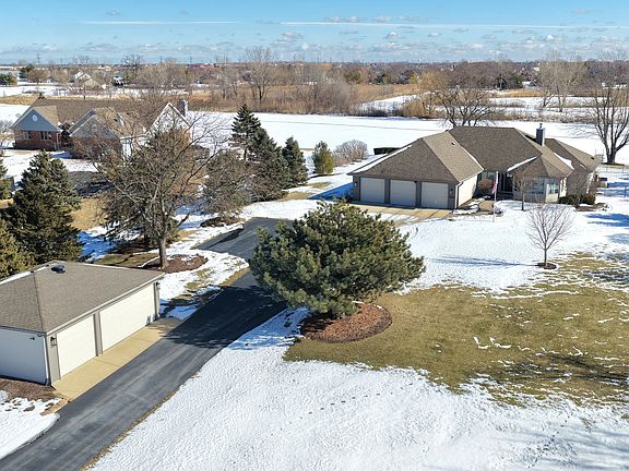 Set on a stunning 2.5-acre lot and backing directly to a serene, fully stocked, 15-acre ski lake with large fish. This expansive 2,600+ square foot ranch offers a rare blend of space, luxury, and lifestyle, complete with four bedrooms, two beautifully updated baths, and an impressive six-car garage setup featuring both a three-car attached oversized garage and a three-car detached garage, ideal for car enthusiasts, hobbyists, or extra storage. From the moment you step inside, the home showcases quality and craftsmanship with refinished hardwood floors, new trim, doors, and elegant crown molding throughout. The totally updated eat-in kitchen is the heart of the home, boasting an oversized 8' x 6' quartz island with breakfast bar seating, white cabinetry, stainless steel appliances, tile backsplash, recessed lighting, and a reverse osmosis system, all seamlessly flowing into the large family room highlighted by vaulted shiplap ceilings and a cozy Heat & Glo fireplace. Just off the main living area, the spacious formal living room is filled with natural light and enhanced by a sophisticated tray ceiling, perfect for entertaining or quiet relaxation. The master suite is a private retreat with tray ceilings and a stylish barn door leading to a custom-upgraded master bath featuring quartz countertops, a freestanding soaking tub, a separate tiled shower, and a generous walk-in closet, while the hall bath was completely redone in 2025 with modern finishes. Additional living space awaits in the full unfinished basement, offering epoxy flooring and painted walls, ready for future expansion or storage. The detached garage is insulated, finished with epoxy flooring, and equipped with a mini split HVAC system for year-round comfort. Outside, the fenced backyard is an entertainer's dream with a brick paver patio, firepit, raised potting beds, and a shed, all leading to your own personal dock on the lake where boats, jet skis, and fishing are allowed, creating a true waterfront lifestyle at home. Major mechanicals offer peace of mind with the furnace, A/C, and hot water heater all just five years old, a Generac whole-house generator system in place, and a water softener and iron filter replaced in 2018, making this exceptional property as practical as it is picturesque. Located in New Lenox grade school District in Lincoln Way Central high school district.
