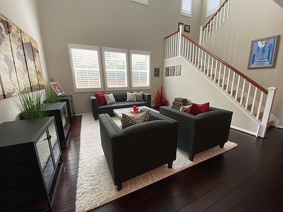 Stunning 5 bedroom/4 bath single family home with a view in the exclusive gated River Village community. This beautiful and well-maintained home has an expansive open floor plan. Gourmet kitchen with high-end stainless-steel appliances and built-in refrigerator opens to a spacious family room with custom Caesarstone fireplace. Large granite countertop island with plenty of space for seating and eat-in nook area. A mudroom connects to a three-car garage with tons of built-in storage, tech center, and floor-to-ceiling pantry cabinets. One bedroom and bathroom, large living room with vaulted ceilings, and dining room also on the ground floor. Expansive master bedroom suite includes a luxurious bathroom with dual sinks, large soak-in tub and glass shower, custom vanity table, and large his and her custom closets. Three additional bedrooms (one ensuite), two bathrooms, and laundry room upstairs. Showstopper entertainer's backyard boasts a large patio cover with a fireplace, Bar-B-Que island with built-in grill and Traeger smoker, and sunken firepit provide plenty of seating overlooking the walking path to beautiful River Village park. Upgrades throughout the house include crown molding, plantation shutters, in-ceiling surround sound, landscape lighting, and hardwood throughout the ground floor. Access to HOA pool. Centrally located near Trader Joe's, supermarkets, shops, restaurants, and the 14 and 5 freeways. Excellent school district. No pets or smokers. Owner will pay for monthly HOA fees and gardening costs. Tenant to pay for remaining utilities (gas, electric, water, trash, internet/TV/phone). Available mid to end of October.