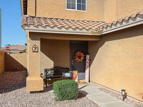 Welcome home to this nice 4 bedroom 2 bathroom Meritage built home on a corner lot and just a few blocks away from the Sundance Golf Club. This floor plan features the primary bedroom on the first floor. The three secondary bedrooms are on the second floor along with a spacious bonus room. The kitchen has white cabinets and updated light fixture. The dining room is open to the family room and has a sliding door the leads to the backyard. The backyard patio has a custom pergola overhead that provides comfort from the sun. The backyard also has artificial turf and low maintenance desert landscaping. The home features ceiling fans, window blinds and neutral colors throughout. Come see this great home today in the Sundance Community