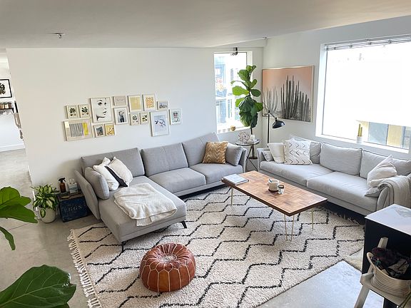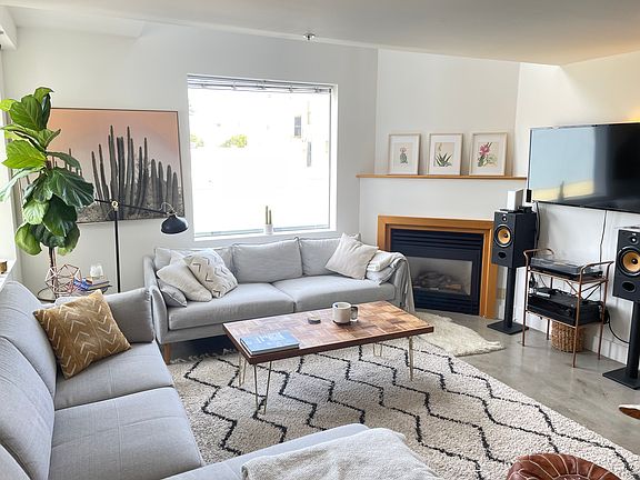 This very quiet corner unit is located on the top floor of the building. Lower Level Kitchen has stainless steel appliances, granite countertops, maple cabinets Dining room connected to the kitchen via island peninsula Coat closet Large open living room with lots of natural light and high ceilings Upper Level Work/loft area has lots of natural light (great for home office or occasional guests) Office area with half bath Full bath with spacious slab counter Large and bright bedroom A large closet Private roof top deck with access from the unit Unit is approximately 1200 sq.ft. Washer & Dryers in building Parking is 300 extra This unit is much better for couples who need the second bedroom for a home office rather than roommates. The second bedroom or work area lacks privacy. Gas and Electricity used inside the unit paid by tenant through accounts with PG&E Garbage, electricity and water (prorated share) paid by tenant through Livable.
