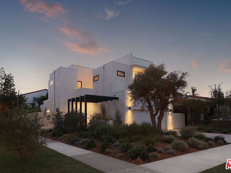 State-of-the-art new construction nestled in a perfect Westside enclave, offering easy access to the best of Westwood and West LA. This modern corner property embodies the ultimate blend of luxury, innovation, and sustainability. Step past the ancient olive tree and through the oversized front door onto wide-plank white oak floors and be greeted by an impressive staircase wrapping around a beautiful chandelier. The open-plan dining, kitchen, and living areas reveal a surprisingly spacious interior, thoughtfully curated with imported fixtures and custom German cabinetry from Bauformat. The sleek paneled fridge and stone-integrated concealed hood add to the minimalist yet highly functional kitchen design. Large glass sliders in the dining area and living room open to the backyard and side patio, flooding the home with natural light. The downstairs features a guest bedroom with an ensuite bathroom and a powder room for added convenience. Ascend the grand stairway to discover three additional bedrooms, including a primary suite with a private patio and a spa-like bathroom featuring a freestanding tub. The home is fully equipped with modern conveniences like a Control4 home automation system and an energy-efficient split-zone HVAC system with a linear multizone setup. The backyard offers ample space for a detached two-story ADU (RTI plans available) or the addition of a sparkling pool, providing endless possibilities for customization.