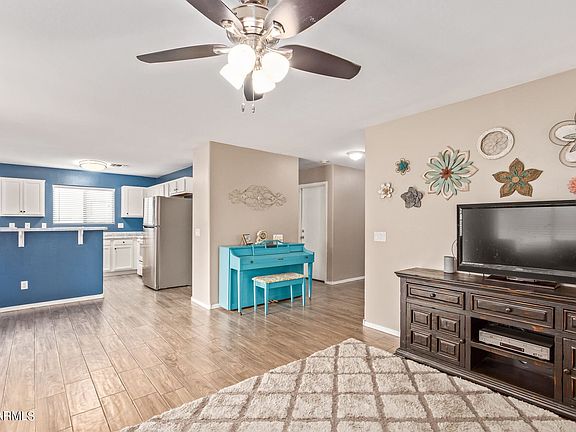 Hard to find 5 bedroom, 3 bathroom home in the gated community of Jacobs Ranch. Fantastic floor plan with one bedroom and full bathroom downstairs spacious kitchen & great room and 4 more bedrooms upstairs. Upgrades include wood look tile flooring throughout the downstairs and upstairs bathrooms, ceiling fans, epoxy garage floor, walk out balcony from the master bedroom and back yard that backs to common area for more privacy. Jacobs ranch has a community pool, park, open spaces and is gated. Close to freeway and shopping, this home is a must see!